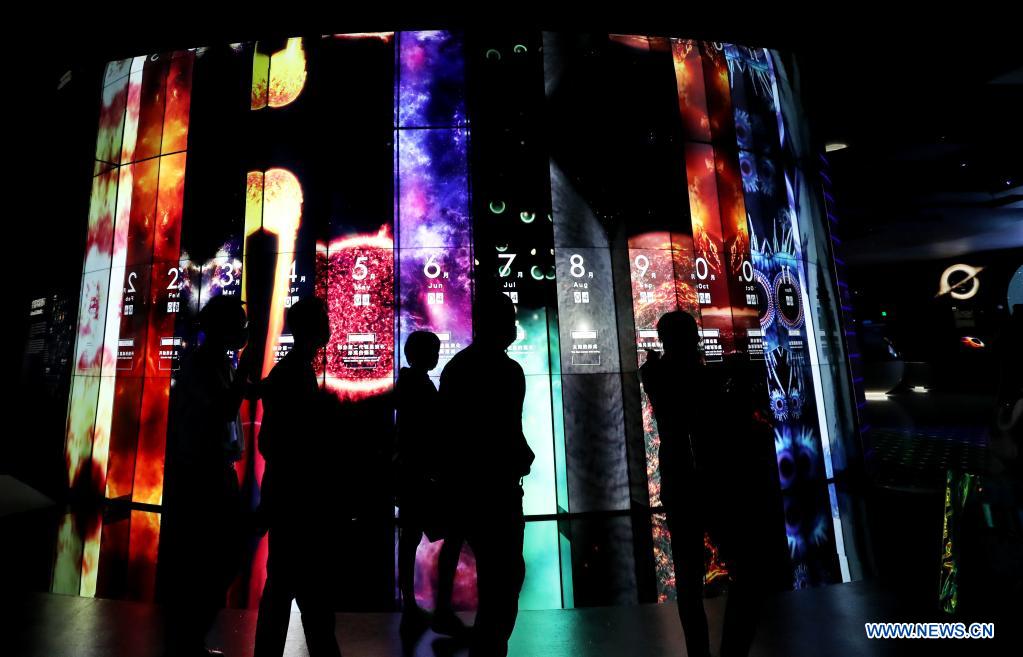 People visit the Shanghai Astronomy Museum during a media preview in east China's Shanghai, July 5, 2021. The Shanghai Astronomy Museum, the world's largest planetarium in terms of building scale, will open on July 17, the planetarium announced Monday. The museum is located in the China (Shanghai) Pilot Free Trade Zone Lingang Special Area. It is a branch of the Shanghai Science and Technology Museum. (Xinhua/Fang Zhe)