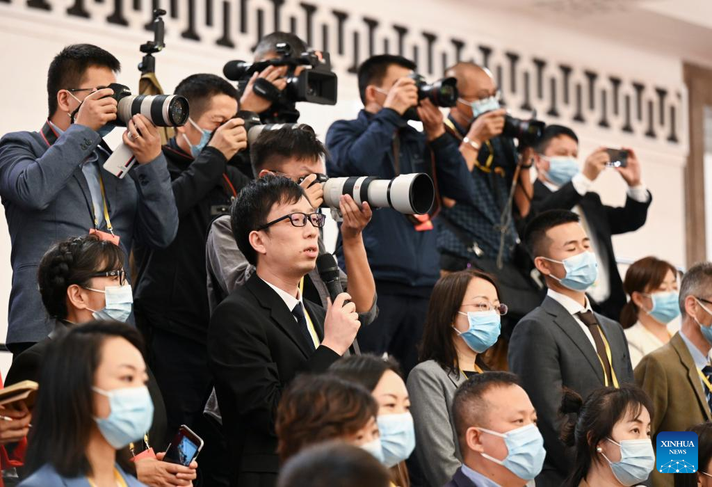Journalists interview delegates to the 20th National Congress of the Communist Party of China (CPC) at the Great Hall of the People in Beijing, capital of China, Oct. 16, 2022. The 20th CPC National Congress opened Sunday. (Xinhua/Jin Liangkuai)