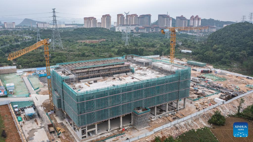 This aerial photo taken on May 23, 2023 shows the construction site of the Midea Cloud data center in Guian New Area, southwest China's Guizhou Province. In February 2022, China started work on the project to build an integrated national big data system involving the establishment of eight national computing hubs and 10 national data center clusters. Guizhou is one of the eight hubs and construction of many data center projects are in full swing. (Xinhua/Tao Liang)