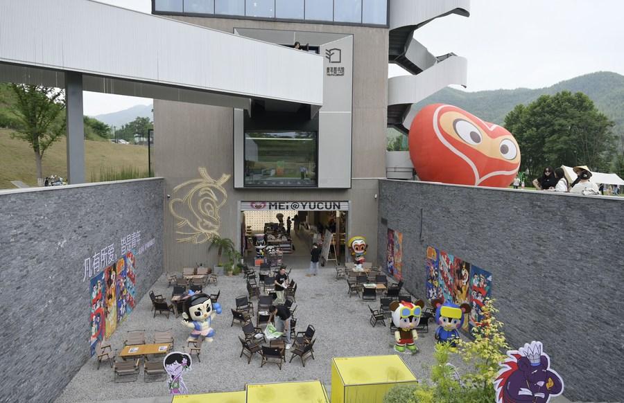 This photo taken on June 5, 2023 shows a Chinese comic-themed cafe in Yucun Village of Anji County, Huzhou, east China's Zhejiang Province. (Xinhua/Cai Yang)