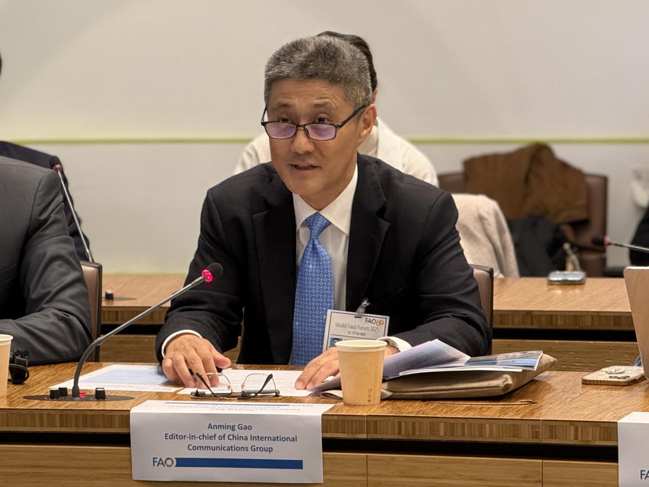 Gao Anming, editor-in-chief of China International Communications Group, delivers a speech at the 2025 World Food Forum Youth Action on Green Agri-Heritage.