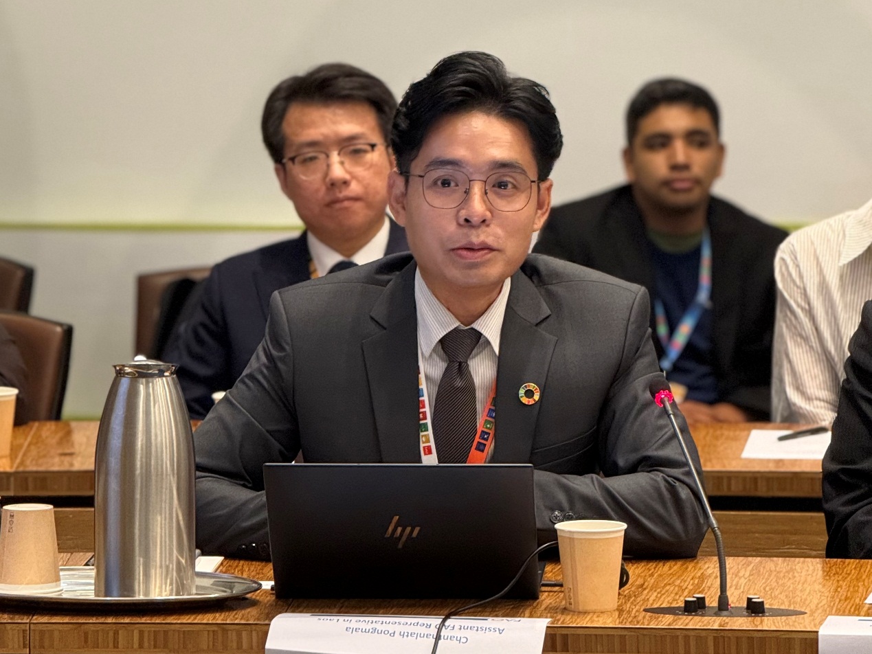 Chanthanlath Pongmala, assistant FAO representative in Laos, delivers a speech at the 2025 World Food Forum Youth Action on Green Agri-Heritage. (Photo by Yang Xiaoxiao / China.org.cn)