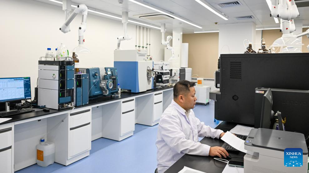A staff member works at a technology center laboratory of the Haikou Customs in Haikou, south China's Hainan Province, on Oct. 22, 2025.