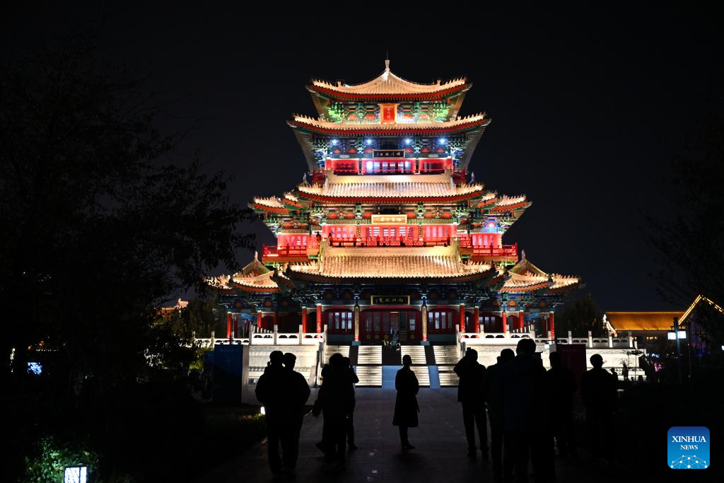 People visit the Nanchuan Tower along the Grand Canal in Yunhe District of Cangzhou, north China's Hebei Province, Oct. 29, 2025.