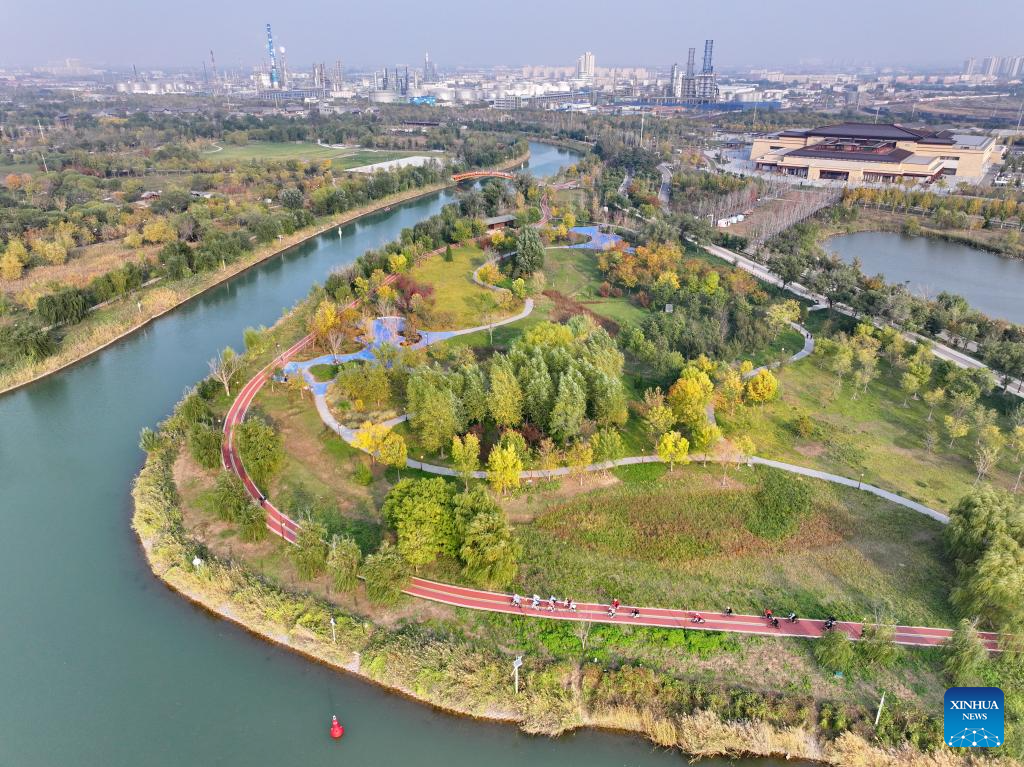 The Grand Canal, which connects Beijing in northern China and the eastern Chinese city of Hangzhou, has a history of more than 2,500 years and is known as the world's longest artificial waterway. An embankment road has been built along the Cangzhou section of the canal, extending 308 kilometers and connecting over 300 villages across the city. The road links natural landscapes, historical and cultural sites, and human landscapes along its line. In addition, more than ten themed parks and relevant supporting facilities have been accordingly constructed along the line, forming a multi-functional space that integrates tourism, leisure, fitness, and recreation activities. The road has not only benefited the locals but also promoted regional connectivity and injected vitality into economic and social development. (Xinhua/Mu Yu)