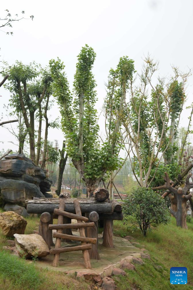 The Mianyang giant panda base, covering an area of about 120 hectares, is located at an ecological park in Mianyang City. The base boasts more than 50 sets of giant panda enclosures with beautiful environment and meeting the requirements of giant panda breeding. (Xinhua/Xu Bingjie)