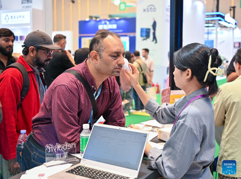 A buyer experiences a beauty equipment during the 138th edition of the China Import and Export Fair in Guangzhou, south China's Guangdong Province, Nov. 3, 2025. The 138th Canton Fair, known officially as the China Import and Export Fair, came to a close on Tuesday in Guangzhou, the capital city of south China's Guangdong Province, having seen a record number of overseas buyers attend. (Xinhua/Xiao Ennan)
