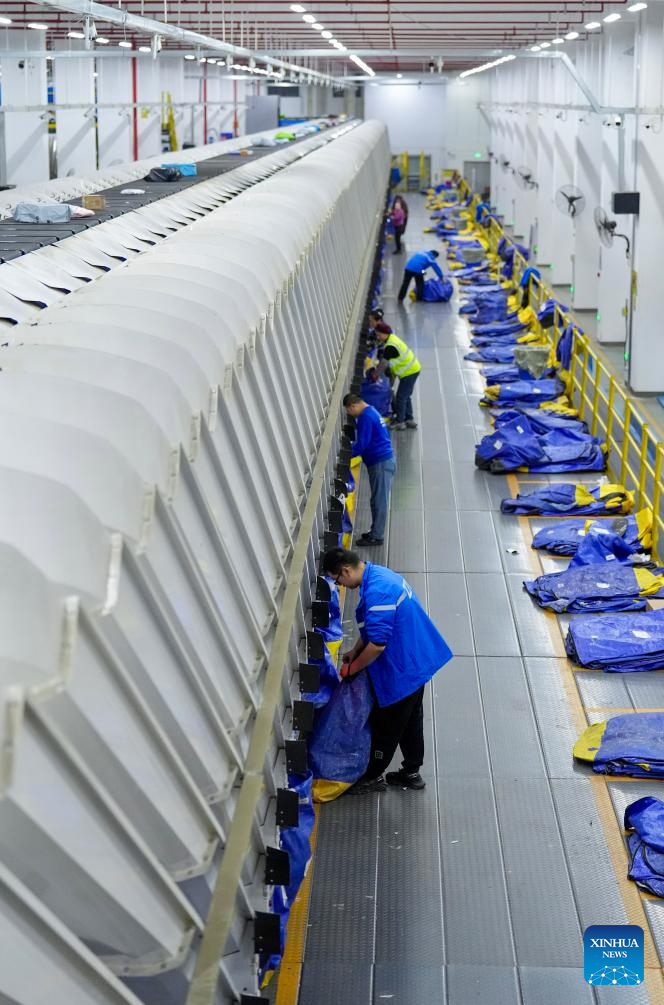 Logistics enterprises in Yinchuan worked at full capacity on Tuesday as the "Double Eleven" online shopping festival entered its peak. (Xinhua/Yang Zhisen)