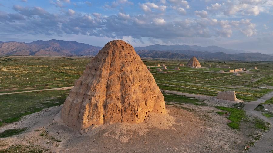 A drone photo taken on July 10, 2025 shows a Xixia imperial tomb in Yinchuan, Northwest China's Ningxia Hui autonomous region. [Photo/Xinhua]
