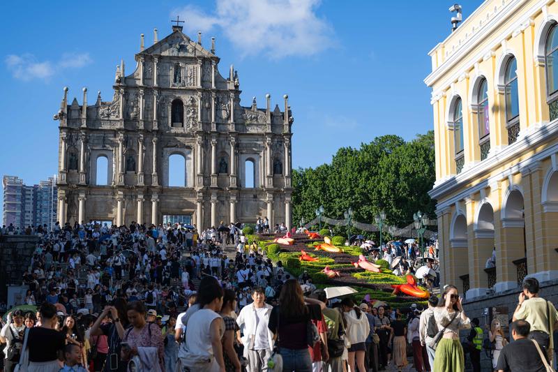 Tourists visit the Ruins of St Paul's in Macao, on Oct 2, 2025. [Photo/Xinhua]