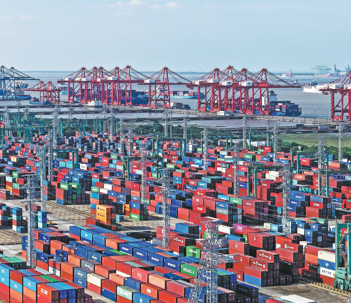 A bustling foreign trade container terminal with constant truck and vessel movements at Shanghai Port on Jan 14. LONG WEI/FOR CHINA DAILY