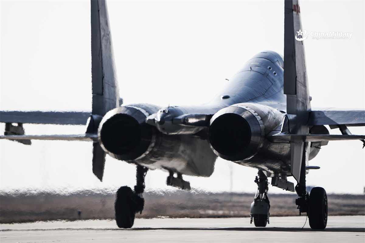 A J-11 fighter jet attached to a unit with the air force under the Chinese PLA Western Theater Command takes off for a flight training exercise on February 26, 2026. (eng.chinamil.com.cn/Photo by Yu Zeqi)