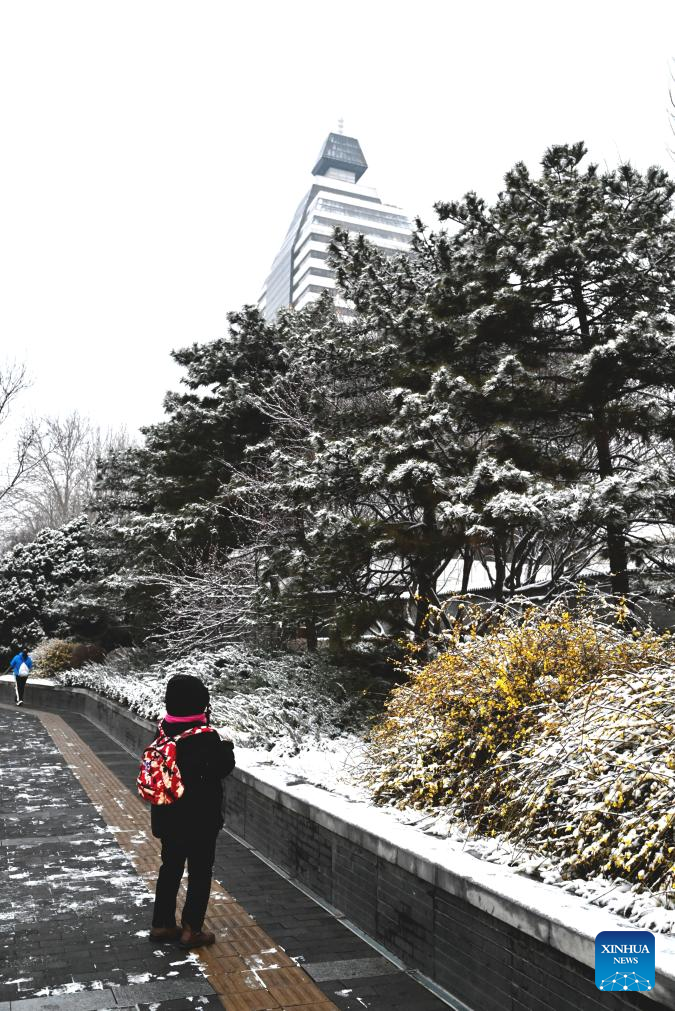 A citizen takes photos of the snow scenery in Beijing, capital of China, on March 5, 2026. Beijing has witnessed a spring snowfall from Wednesday to Thursday. (Xinhua/Chen Yehua)