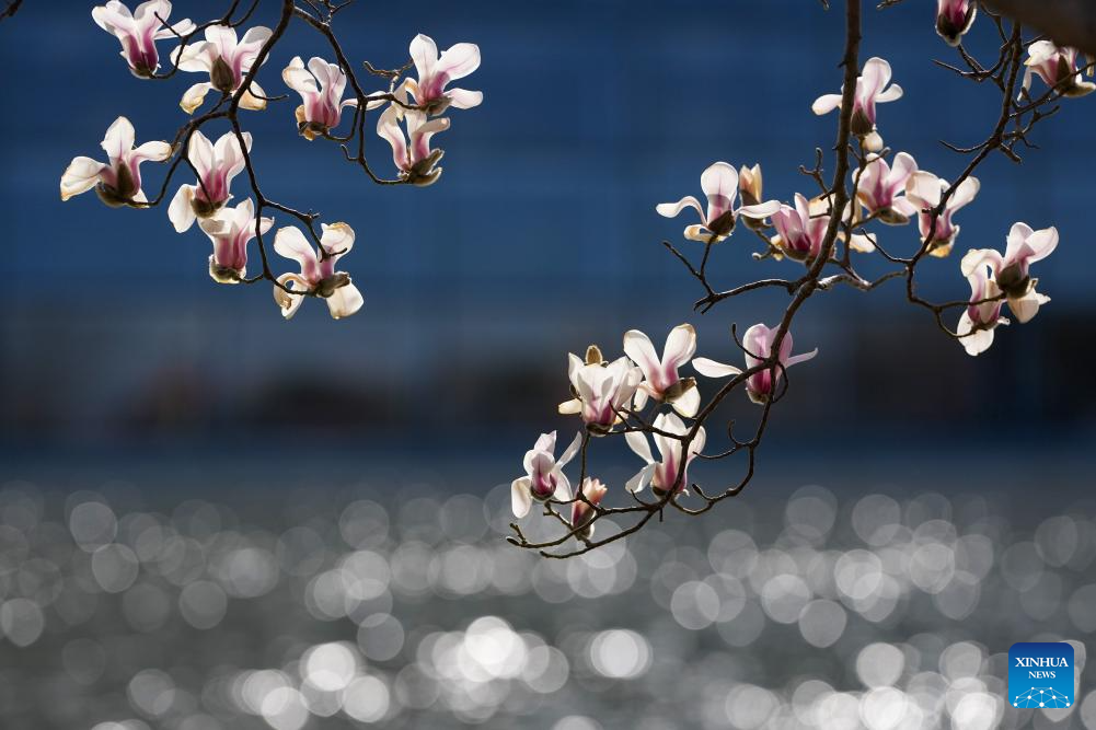 This photo taken on March 9, 2026 shows magnolia blossoms in Beijing, capital of China. (Xinhua/Ju Huanzong)