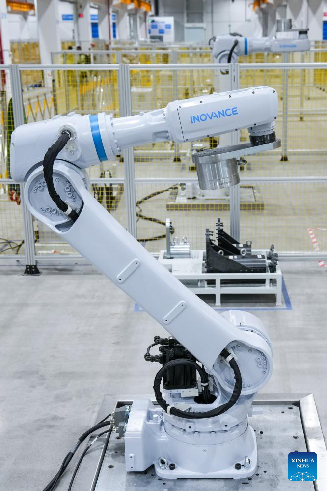 A robot is being tested before its delivery in a workshop of Inovance Group in Jiangning District of Nanjing, east China's Jiangsu Province, on March 17, 2026. (Xinhua/Li Bo)