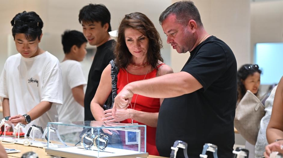 Customers shop at duty-free shopping mall in Sanya, Hainan